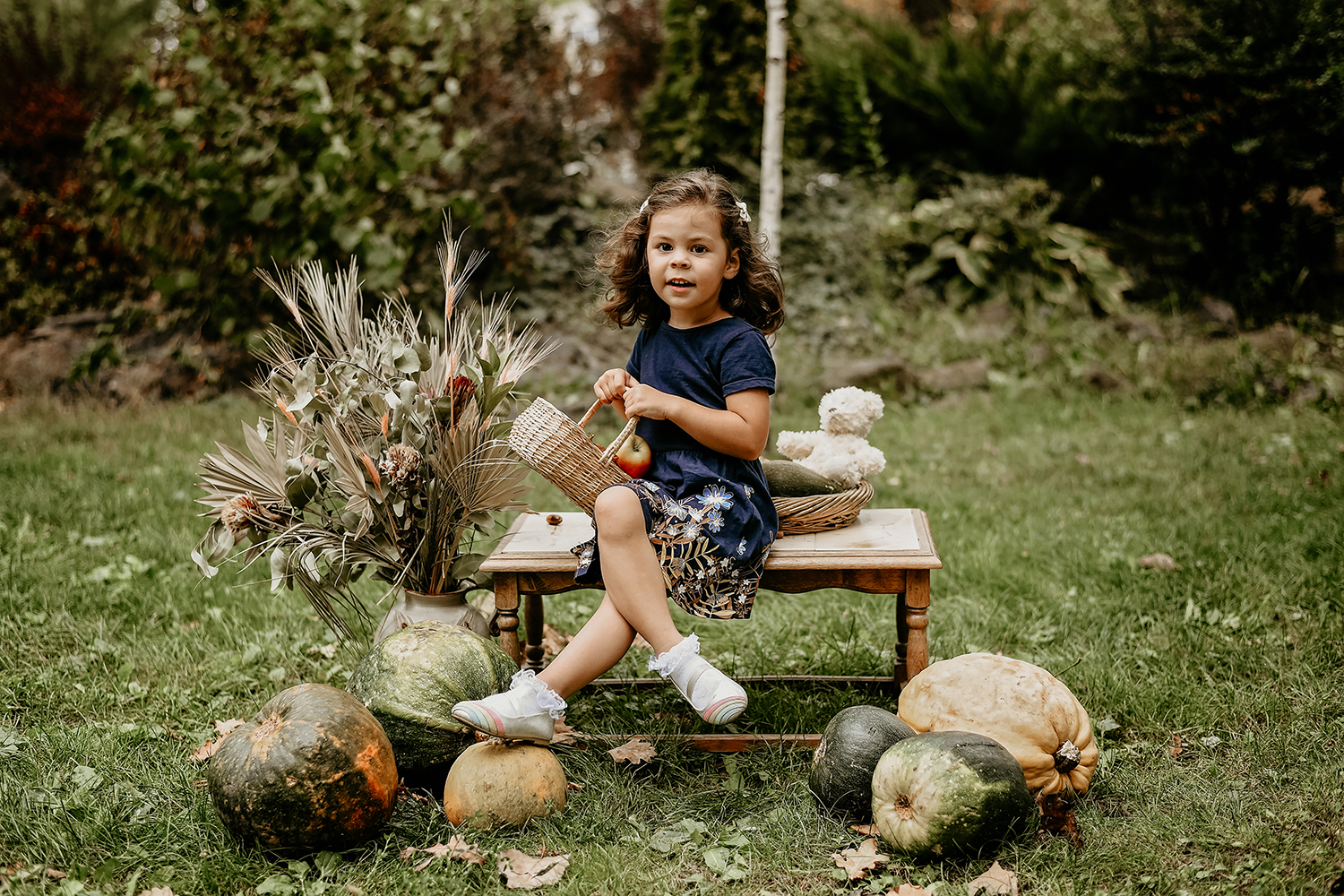 Sedinta foto pentru copii de Toamnă, Sedinta foto de familie, in parc cu decor de dovlecei, A venit, a venit toamna…